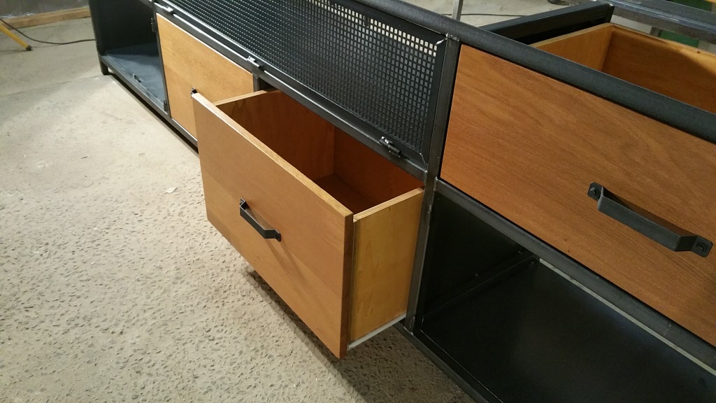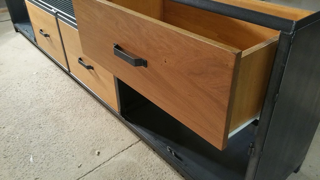 Excellence artisanale : un meuble TV industriel en bois massif et métal réalisé sur mesure