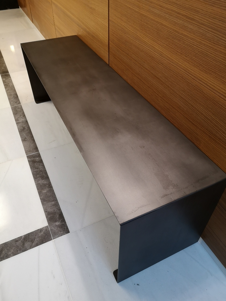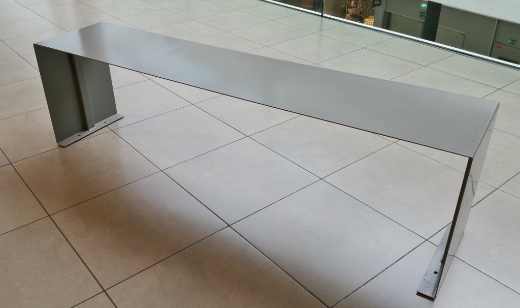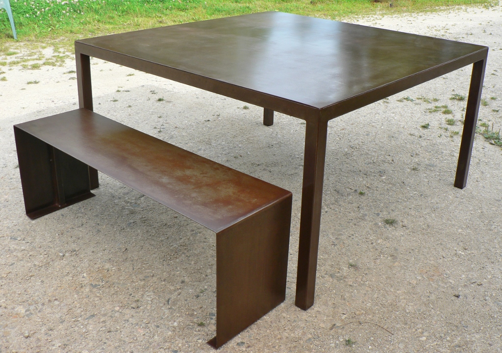 Pour les amateurs de design industriel authentique, le banc ULTIMO est disponible en acier calaminé. Cette finition brute, issue du laminage à chaud de l’acier, révèle les nuances et les textures naturelles du métal, conférant à chaque pièce un caractère unique et une histoire propre.