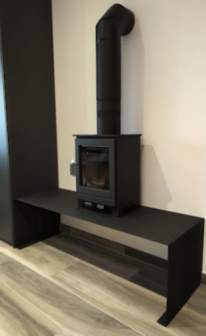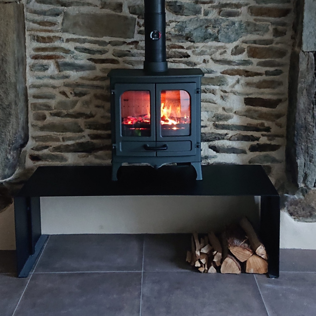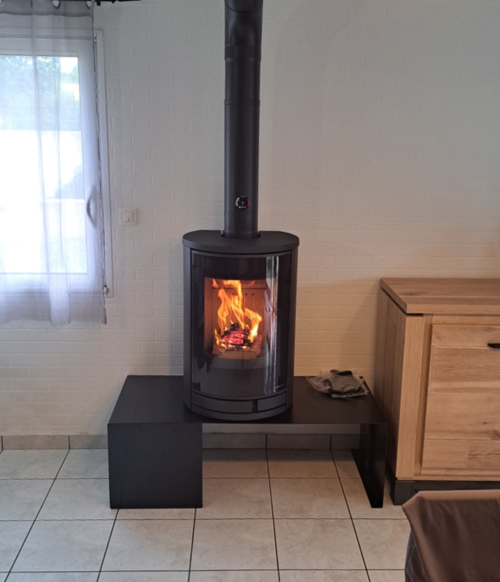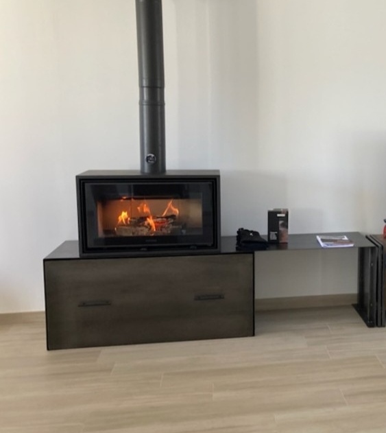 * bonjour, chose promise, chose due ! nous avons tardé parce que nous attendions de faire notre premier feu pour une belle photo. Nous sommes ravis de la belle réalisation sur mesure. Les pantones ne correspondent pas parfaitement mais l’erreur peut venir de chez nous ! Merci et au plaisir de rééditer un nouveau projet ensemble ! Bien cordialement- Roxane et Xavier Langhendries- Belgique