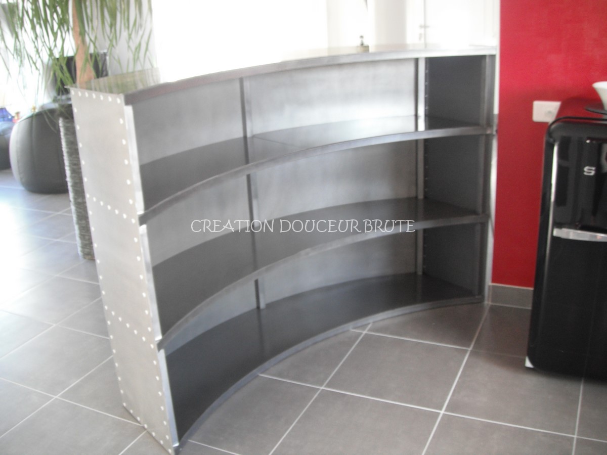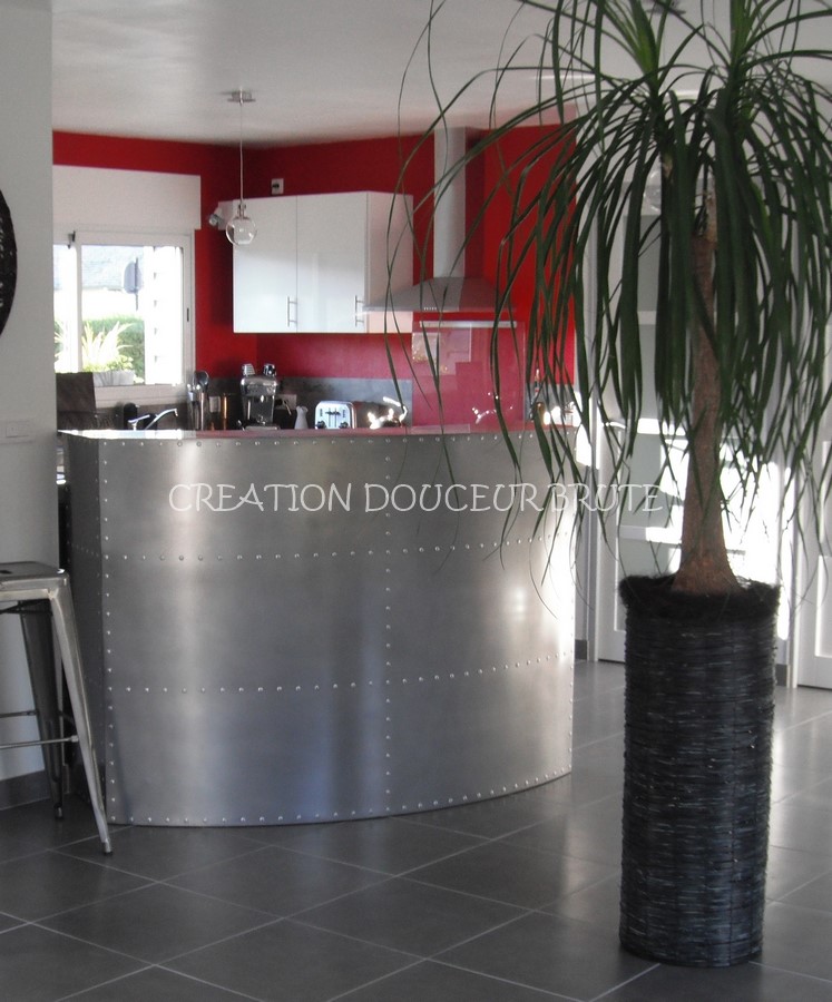 Apportez une touche de convivialité et de sophistication à votre intérieur avec le bar « COURBE » en acier poli riveté. Ce magnifique bar, fabriqué sur mesure, est parfait pour votre appartement ou maison. Avec sa courbe élégante et sa finition en acier poli, il s’intègre parfaitement dans une cuisine contemporaine ou comme objet de décoration dans votre espace de vie.