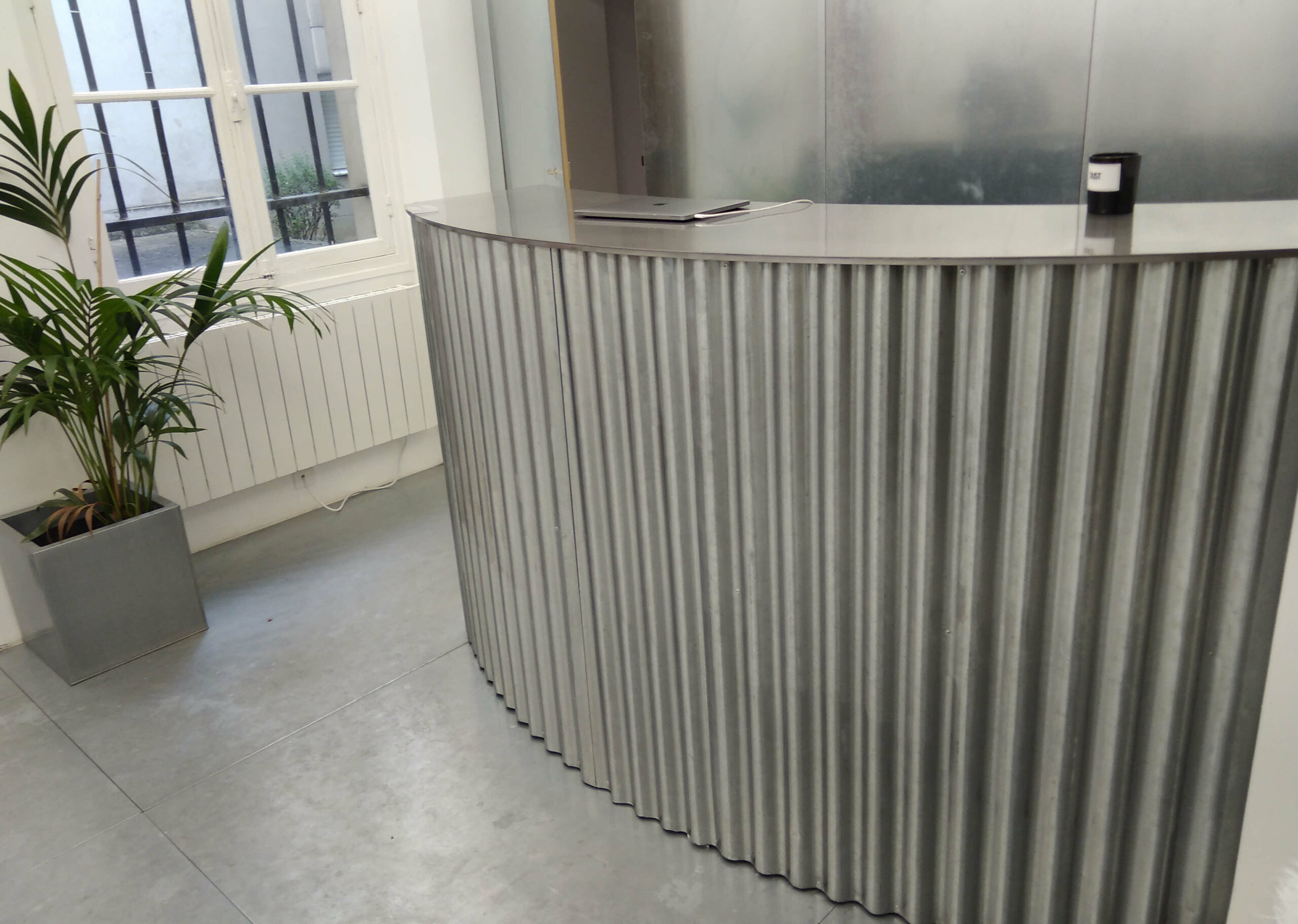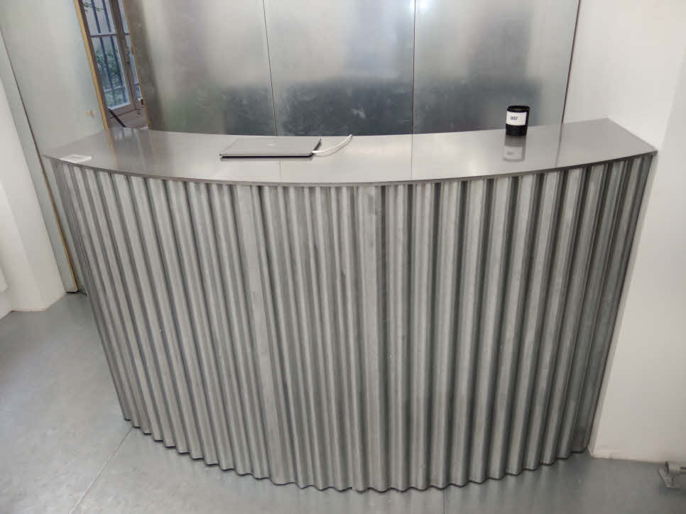 Le bar ou comptoir courbé « GRAND LUXE » combine un design contemporain avec des matériaux nobles comme l’acier brossé. Fabriqué sur mesure en France, ce meuble ajoute une touche de sophistication à tout espace, que ce soit un magasin, une boutique, une cuisine ou un salon.