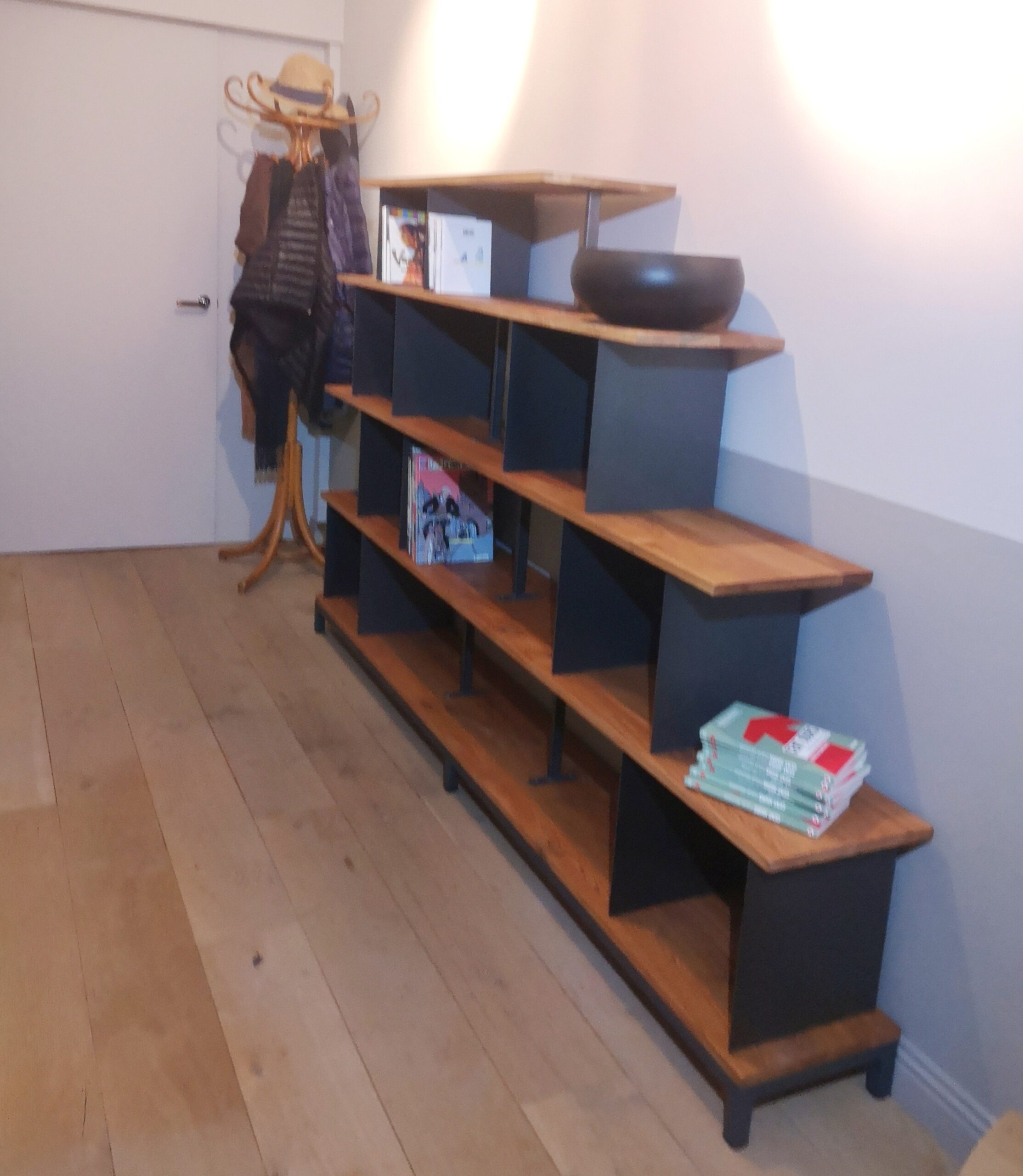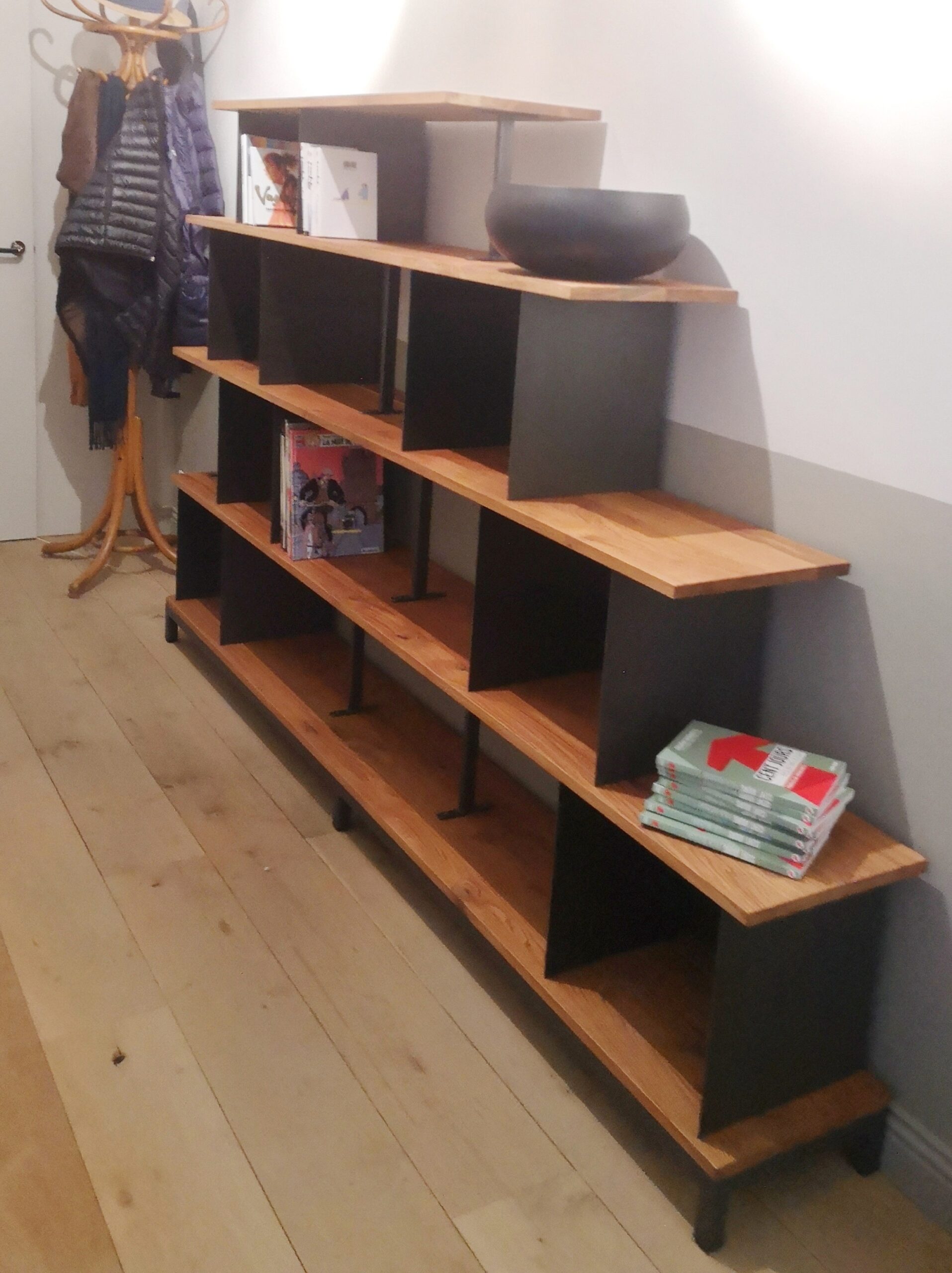 En quête d’une bibliothèque modulable aussi unique que votre imagination débordante ? Ne cherchez plus ! Notre bibliothèque modulable en métal et bois massif vous offre une infinité de possibilités pour créer l’espace de rangement parfait. Que vous optiez pour une configuration en forme d’escalier, de pyramide, rectangulaire basse ou haute, laissez libre cours à votre créativité et personnalisez-la avec nos matériaux et finitions haut de gamme. Avec douceur brute, Béatrice vous aidera à concrétiser votre vision et à construire une bibliothèque qui raconte votre histoire.