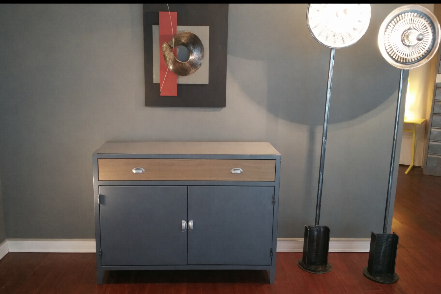 Buffet avec finition acier poli : élégance industrielle et contemporaine