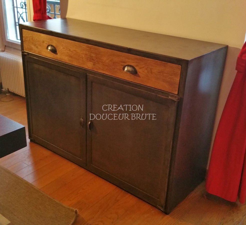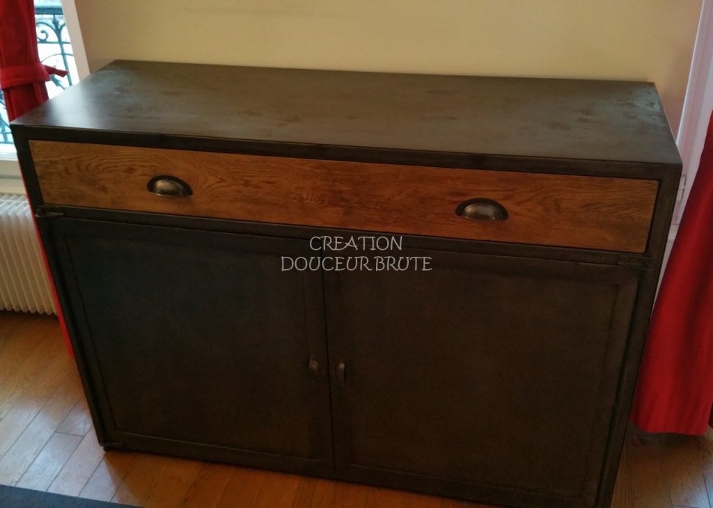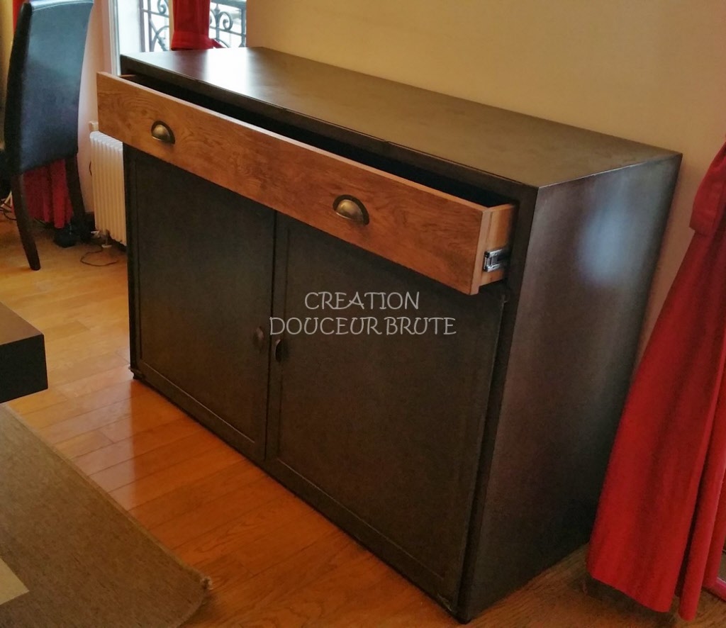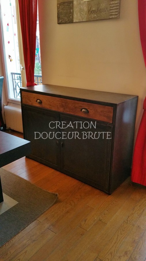 Buffet industriel 2 portes et tiroir en bois sur mesure « NOGENT » – Élégance et fonctionnalité