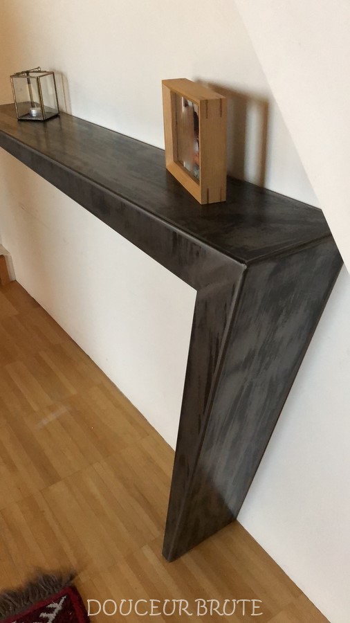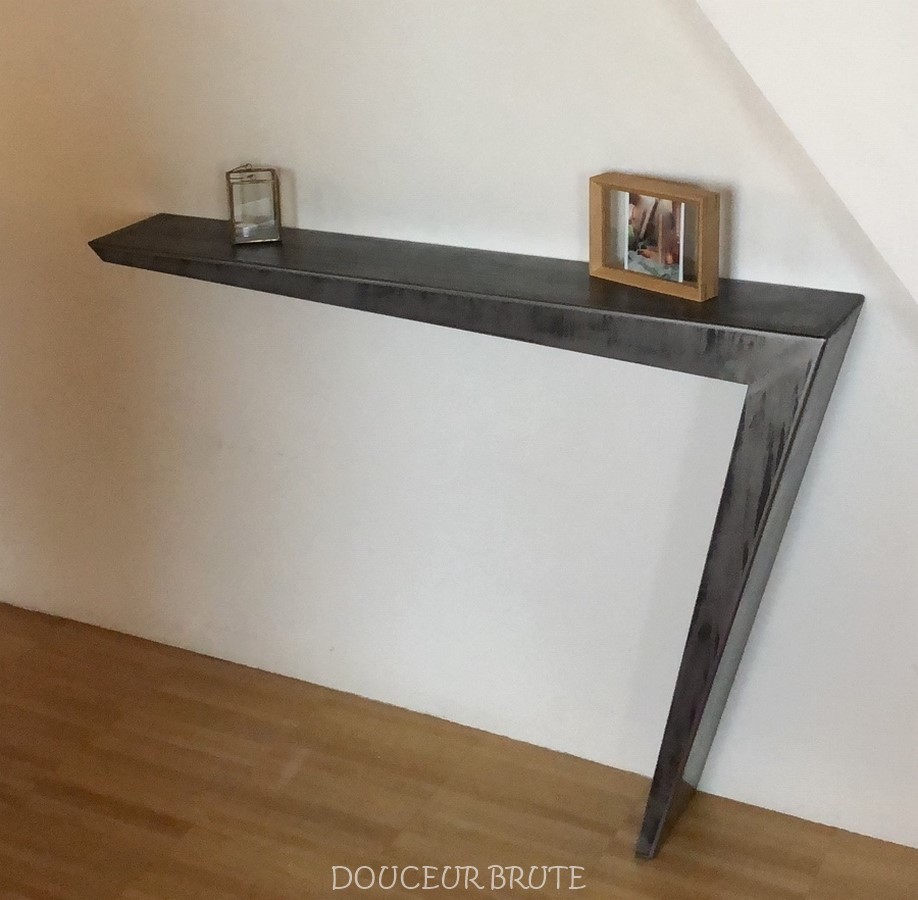 Grâce à son design épuré, la console « NAOS » s’intègre parfaitement dans une entrée, un salon ou une chambre. Son prix débute à 628 € en acier calaminé brut avec soudures apparentes.