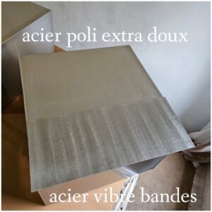 • Le Caractère Brut et Moderne du Vibré : Pour une esthétique plus industrielle et contemporaine, la finition vibrée est un choix audacieux. Elle confère à l’acier une texture subtile, un aspect qui absorbe la lumière et crée une profondeur visuelle captivante. Cette finition met en valeur la robustesse du matériau tout en apportant une touche d’originalité et de caractère affirmé à votre intérieur. Elle s’intègre parfaitement dans des ambiances loft, industrielles chic ou minimalistes.