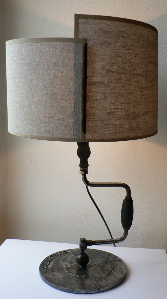 Apportez une touche unique et éco-responsable à votre intérieur avec la lampe « DOMINIQUE de Villebrequin ». Cette lampe, fabriquée sur commande, combine une base en acier finition anthracite et un villebrequin décapé avec bois teinté ébène pour un design à la fois industriel et élégant.