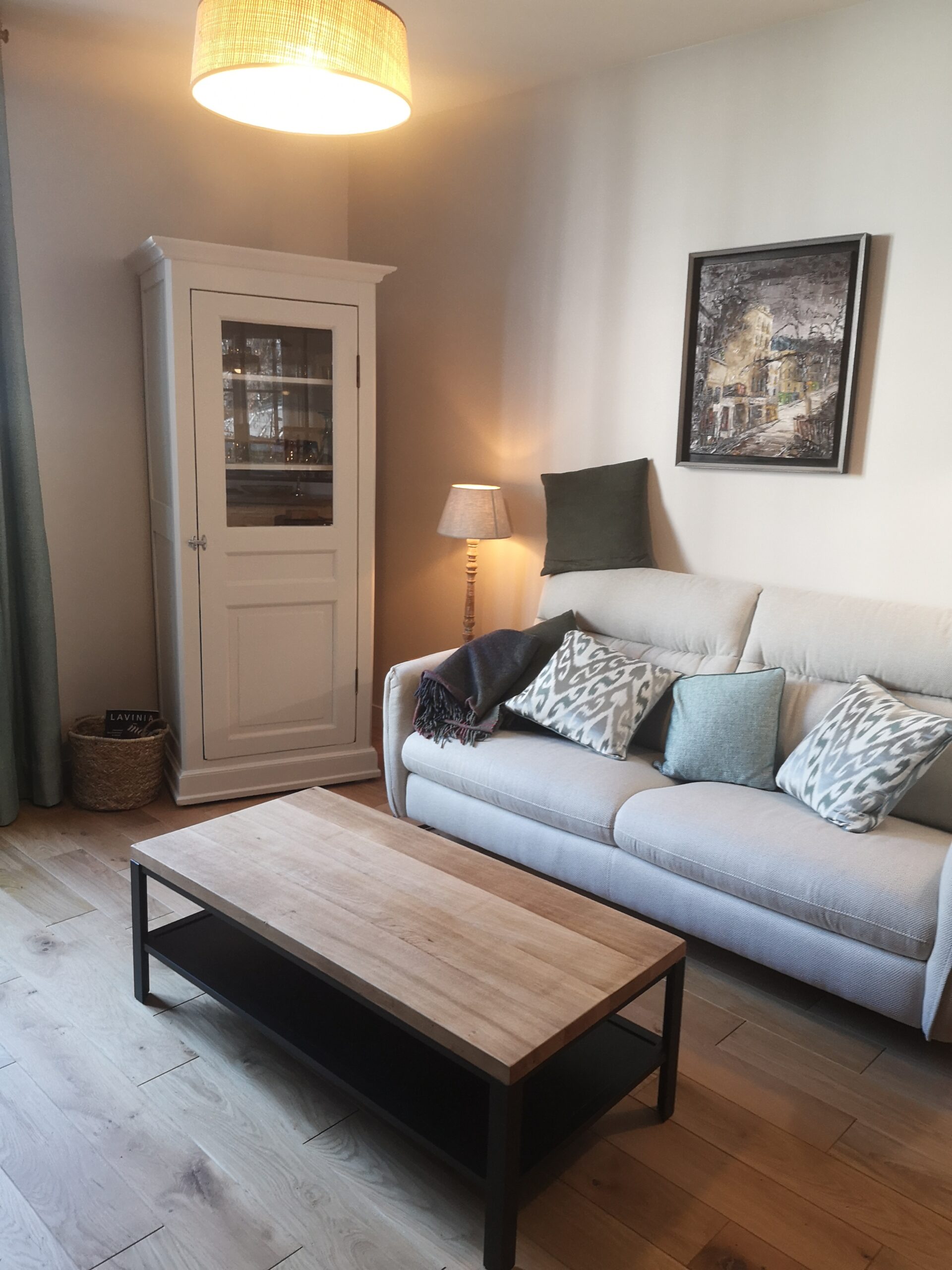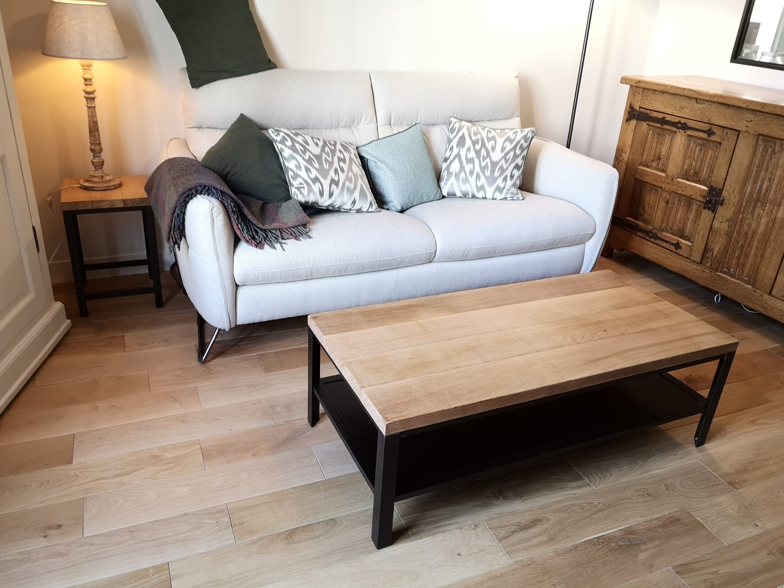 Douceur Brute vous propose une table et un bout de canapé carré aux lignes simples et épurées dans un style industriel campagne chic-